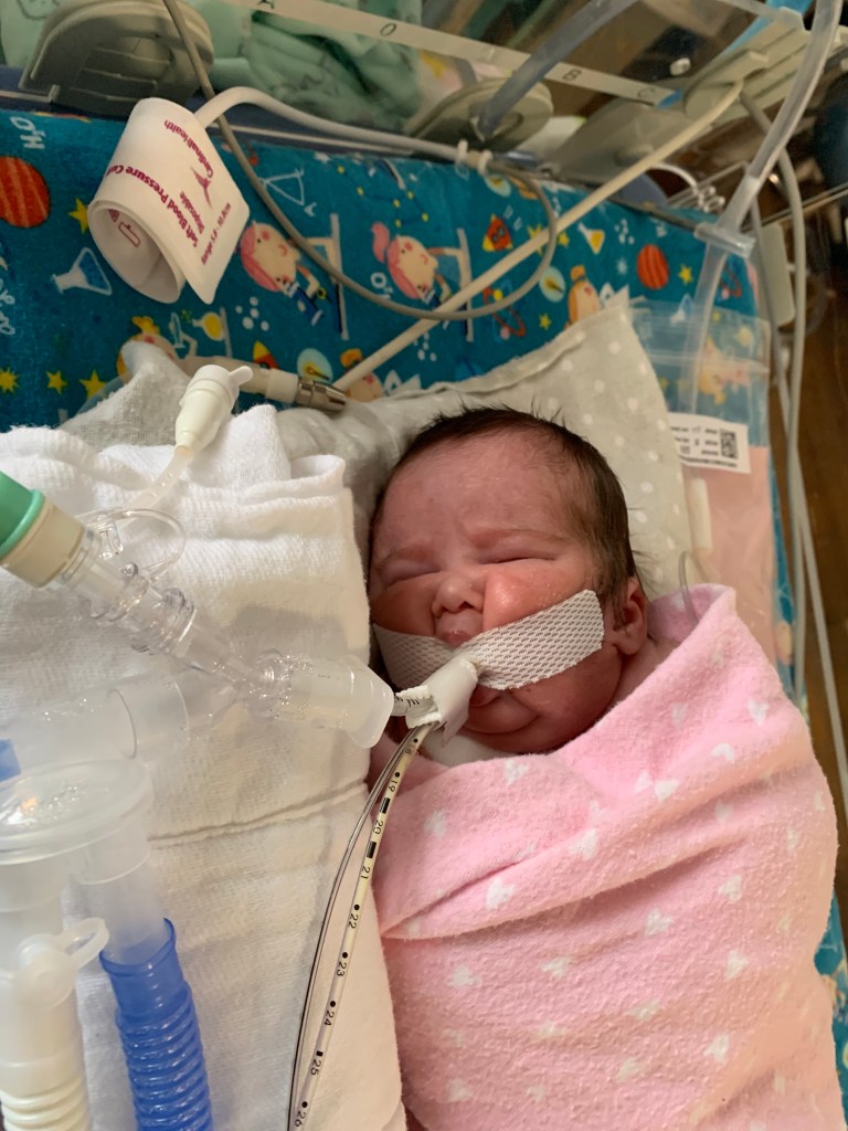 Emy G is a bit of an escape artist as she wriggled out of her nasal cannula about half the time. She moved her head backwards then to one side then the other, this usually did the trick and got that pesky plastic out of her nostrils. It’s a good thing her lungs are doing well so her oxygen saturation didn’t drop when she did this. When she moved her nasal cannula it prompted her to sneeze, which was the most adorable part of her little trick. She was a bit grumpy when they changed her from CPAP to a high flow nasal cannula today. She can’t easily wiggle her way out of the new nasal cannula. She seemed disappointed about this, but it was for the best to keep a consistent flow of oxygen for her.