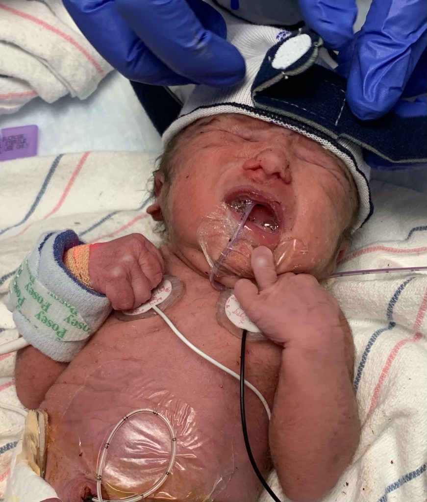 We’re also so thankful for the excellent team we are working with at the University of Minnesota. We were hoping she would stay in the womb longer, but she showed some drops in heart rate due to the compression between her, the umbilical cord, and the placenta. When the membranes ruptured, she lost the fluid that protects the umbilical cord from compressing. We’re thankful the team counseled us to deliver and helped us feel confident in that decision. Yesterday was the right time for her to make her entrance into the world.